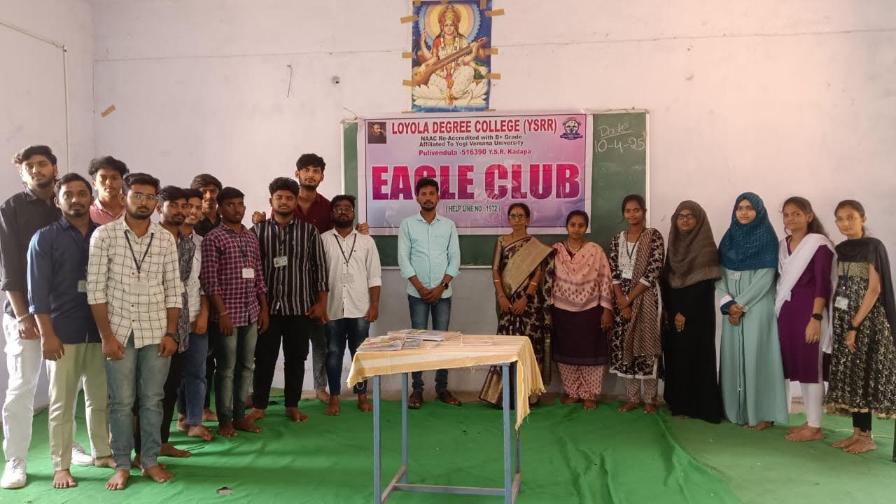 The Eagle Club at Loyola Degree College is designed to nurture leadership, innovation, and personal growth among students. Named after the eagle, symbolizing vision, courage, and strength, the club encourages students to soar beyond limitations, embrace challenges, and develop skills that will help them excel academically, socially, and professionally.