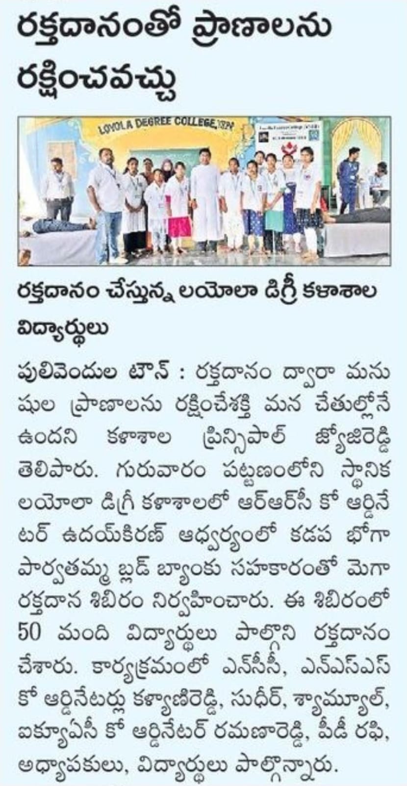The Red Ribbon Club (RRC) at Loyola Degree College is a voluntary initiative that aims to spread awareness about HIV/AIDS, promote healthy lifestyles, and instill values of social responsibility among youth. The club organizes awareness campaigns, seminars, rallies, blood donation drives, and interactive sessions with health experts to educate students and the community.